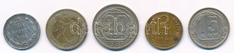Szovjetunió 1922. 10k Ag + 1932. 15k Cu-Ni+ 1935. 20k Cu-Ni + 1936. 2k Al-Br + 15k Cu-Ni T:1-,2