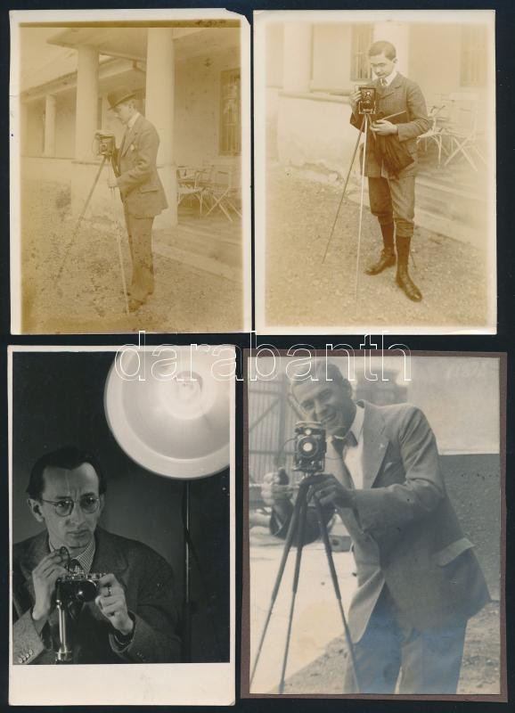 cca 1920 és 1950 között készült felvételek a Foto Homo Sapiens fajról, azaz a fényképező emberekről, 4 db vintage fotó, 12x9 cm