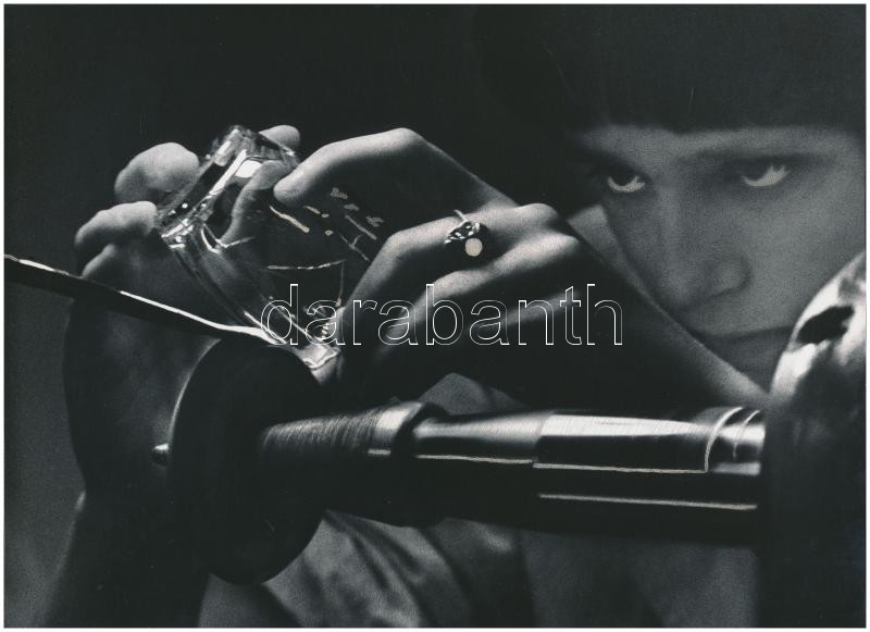 cca 1978 Gebhardt György (1910-1993) budapesti fotóművész hagyatékából 1 db aláírt, vintage fénykép (Üvegcsiszoló), 21x28,3 cm