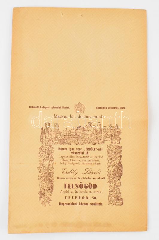 cca 1920 Felsőgöd Erdély fűszer, csemege és rövidáru kereskedő reklám papír zacskó 25x40 cm