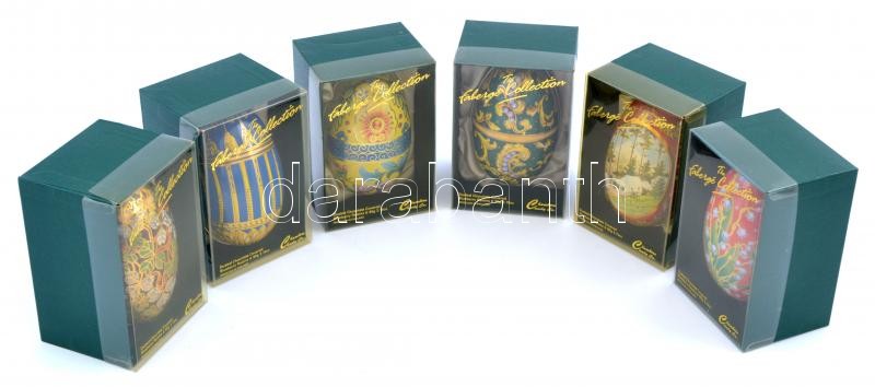 Fabergé stílusú modern fém tojás dobozok (6db), csoki nélkül, eredeti dobozában, 10×6,5 cm (6×)