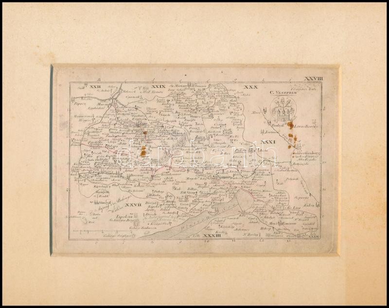 1804 Veszprém vármegye térképe. C(omitatus) Veszprim. XXVIII. In: [Korabinszky János Mátyás]: Korabinsky, Johann Matthias: Atlas Regni Hungariae Portatilis. Bécs, 1804. Schaumburg und Compagnie, rézmetszet, paszpartuban, kissé foltos, 11x17 cm. / 1804 Map of Veszprém. C(omitatus) Veszprim. XXVIII. In: Korabinsky, Johann Matthias: Atlas Regni Hungariae Portatilis. Wien, 1804. Schaumburg und Compagnie, copper engraving, in passepartout, little bit spotty, 11x17 cm.