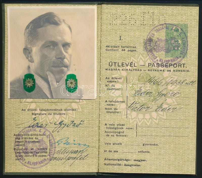 https://www.darabanth.com/en/356-Online-auction/356.0/Art-and-other-collectibles/Military~500027/1938-1939-Magyar-Kiralysag-fenykepes-utlevele-Eder-Gyozo-ny-huszar-alezredes-reszere-n~II2035138