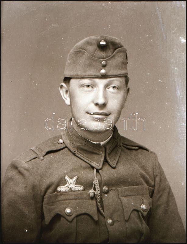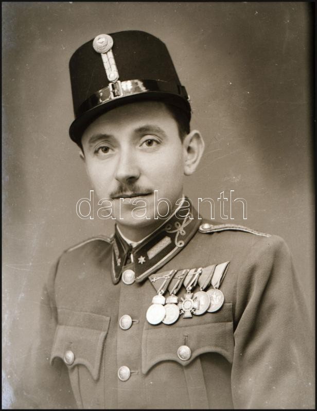 Description: cca 1943 Katonákat - és más egyenruhásokat - ábrázoló felvételek, Mosonyi Antalné (?-?), (Marika fotó) kiskunfélegyházi műtermében készült 13 db vintage síkfilm negatív, 6x9 cm és 10x15 cm között
