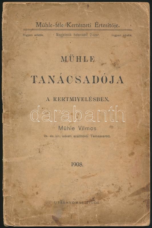https://www.darabanth.com/en/356-Online-auction/356.0/Books/Books-Gastronomy-and-Gardening~1000007/Muhle-Vilmos-Muhle-tanacsadoja-a-kertmivelesben-Teesvar-1908-szerzoi-Kopott-foltos~II2034352