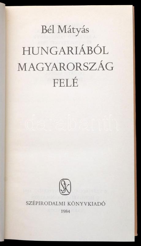 Bél Mátyás: Hungariából Magyarország felé. Magyar Ritkaságok. Bp., 198... https://www.darabanth.com/en/356-Online-auction/356.0/Books/Books-History~1000004/Bel-Matyas-Hungariabol-Magyarorszag-fele-Magyar-Ritkasagok-Bp-1984-Szepirodalmi-Kiad~II2004617