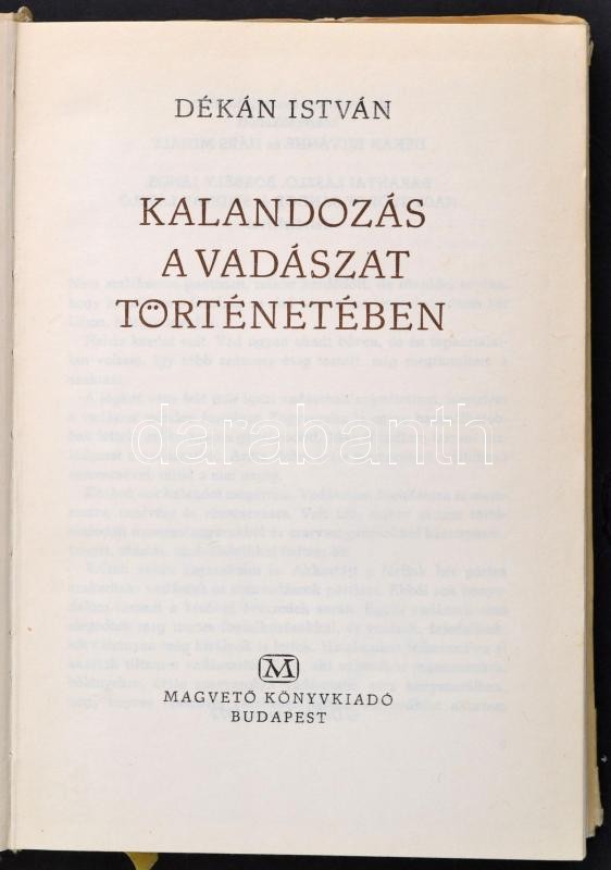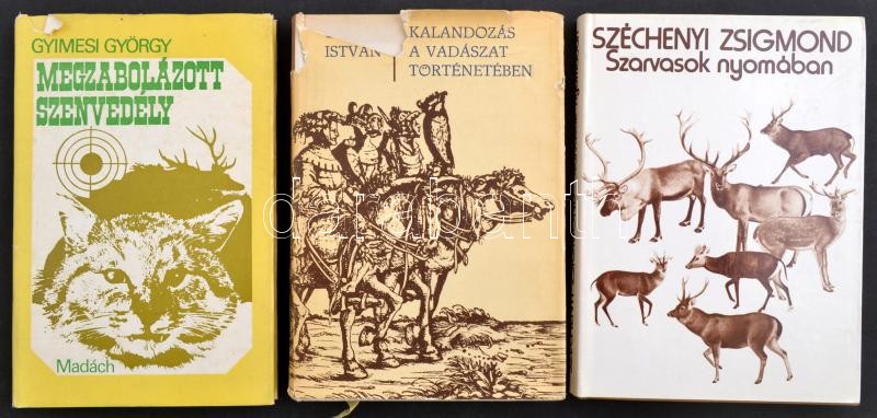3 db vadászkönyv: Széchenyi Zsigmond: Szarvasok nyomában. Dékán István: Kalandozás a vadászat történetében. Gyimesi György: Megzabolázott szenvedély.