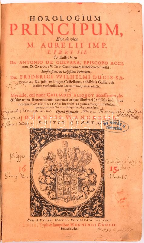 Wanckel, Johannis: Horologium Principium, sive de vita M. Aureli Imp. Libri III. ... Editio Quarta.