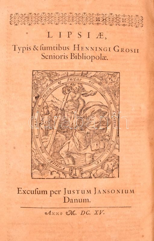 Lipsiae (Lipcse), 1615. Henning Grosius - J. Janson. 36 sztl .lev., 695. p., 13 sztl. lev., az utolsó lapon kolofon és fametszetes nyomdászjelvény. Az címlapon tulajdonosi bejegyzésekkel. Korabeli kissé sérült egészbőr kötésben. / In slightly damaged full leather binding