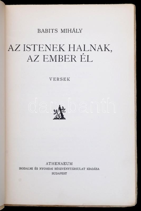 Babits Mihály: Az istenek halnak, az ember él. Versek. Bp.,[1929],Athe... https://www.darabanth.com/en/356-Online-auction/356.0/Books/Books-Other-rarities~1000020/Babits-Mihaly-Az-istenek-halnak-az-ember-el-Versek-Bp-1929-Athenaeum-61plus2-p-Elso-kiadas~II2042958