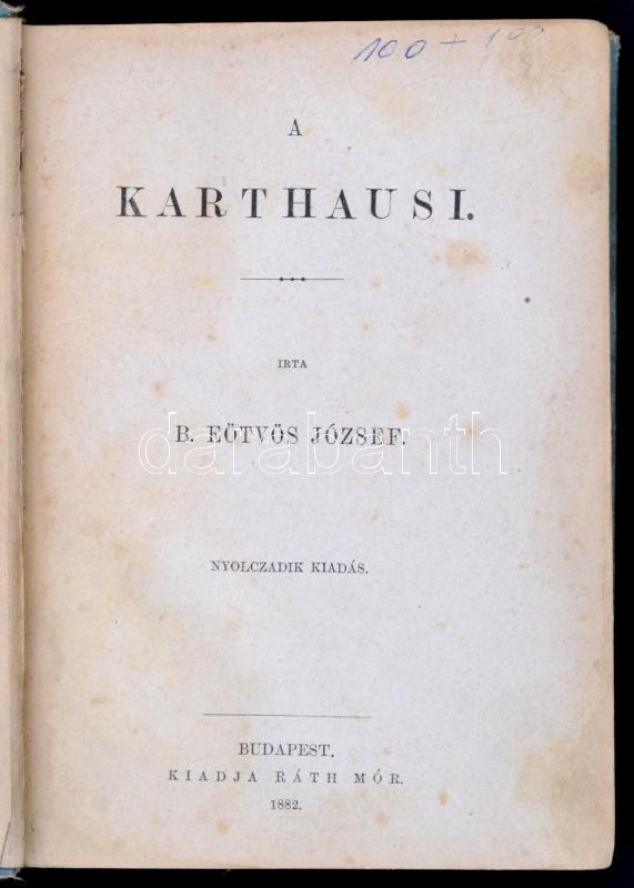 https://www.darabanth.com/en/356-Online-auction/356.0/Books/Books-Other-rarities~1000020/Eotvos-Jozsef-A-karthausi-Bp-1882-Rath-Mor-Kopott-diszes-vaszonkotesben-jo-allapo~II2034298