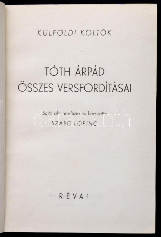 Tóth Árpád összes versfordításai. Sajtó alá rendezte és bevezette: Sza... https://www.darabanth.com/en/356-Online-auction/356.0/Books/Books-Other-rarities~1000020/Toth-Arpad-osszes-versforditasai-Sajto-ala-rendezte-es-bevezette-Szabo-Lorinc-Bp-1942~II1949639