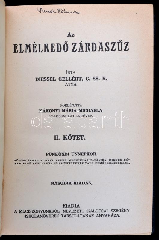 Diessel Gellért: Az elmélkedő zárdaszűz I.-II. Kalocsa, é.n. MIasszonyunk Iskolanővérek. Egészvászon kötésben.