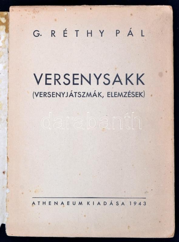 G. Réthy Pál: Versenysakk (versenyjátszmák, elemzések). Bp., 1943, Athenaeum. Papírkötésben, könyvtest elvált
