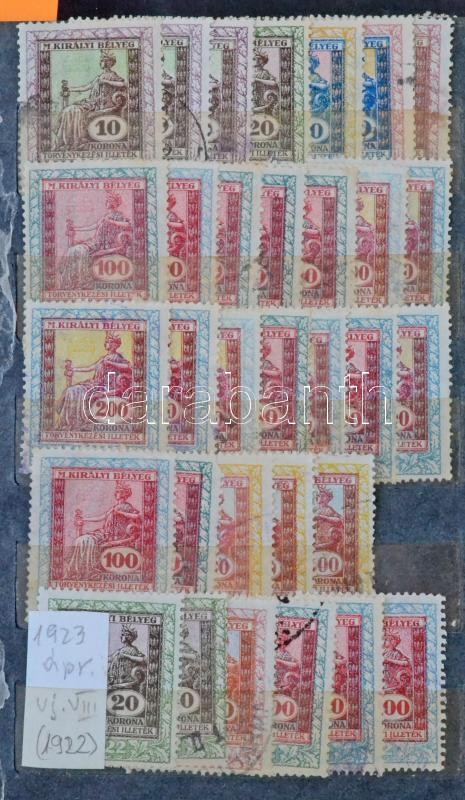 422 db Törvénykezési illetékbélyeg 7 lapos kis berakóban