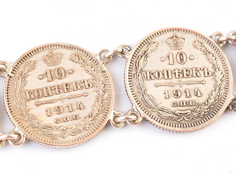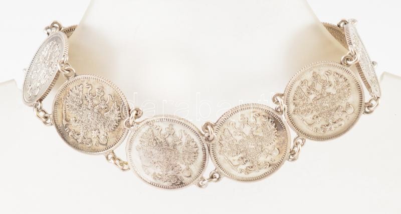 Ezüst(Ag) 10 kopekes érmékből álló karkötő, h: 18 cm, nettó: 18,2 g