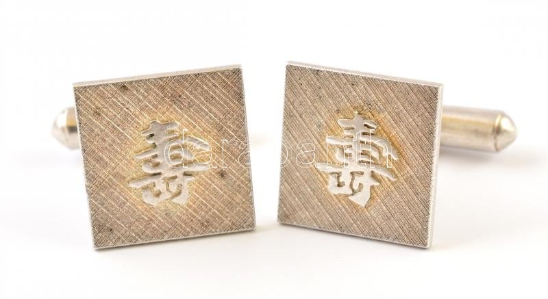 Ezüst(Ag) "Shou" (hosszú élet) kínai mandzsettagomb pár, 2×1,5 cm, nettó: 9,8 g