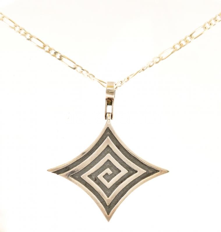 Ezüst(Ag) figaro nyaklánc, négyzetes függővel, jelzett, h: 55 cm, 6×5 cm, nettó: 24,1 g
