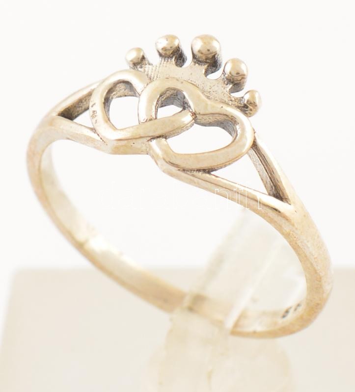 Ezüst(Ag) koronás-szíves Pandora gyűrű, jelzett, méret: 53, nettó: 1,6 g