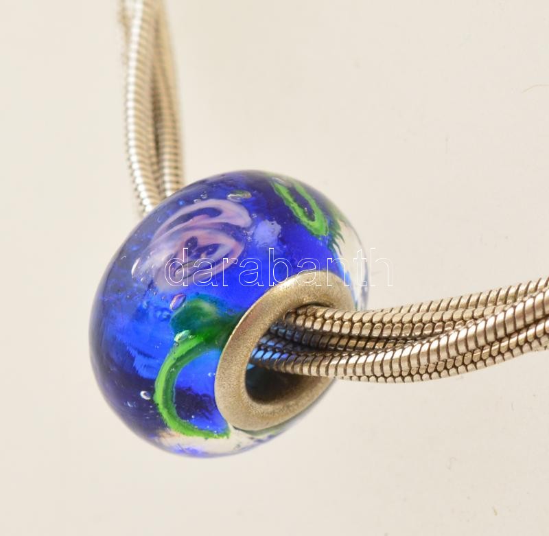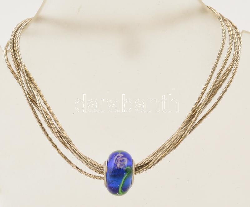 Ezüst(Ag) többszálas karkötő, 1 db muránói üveg charmmal, h: 19 cm, jelzett, bruttó: 11,1 g
