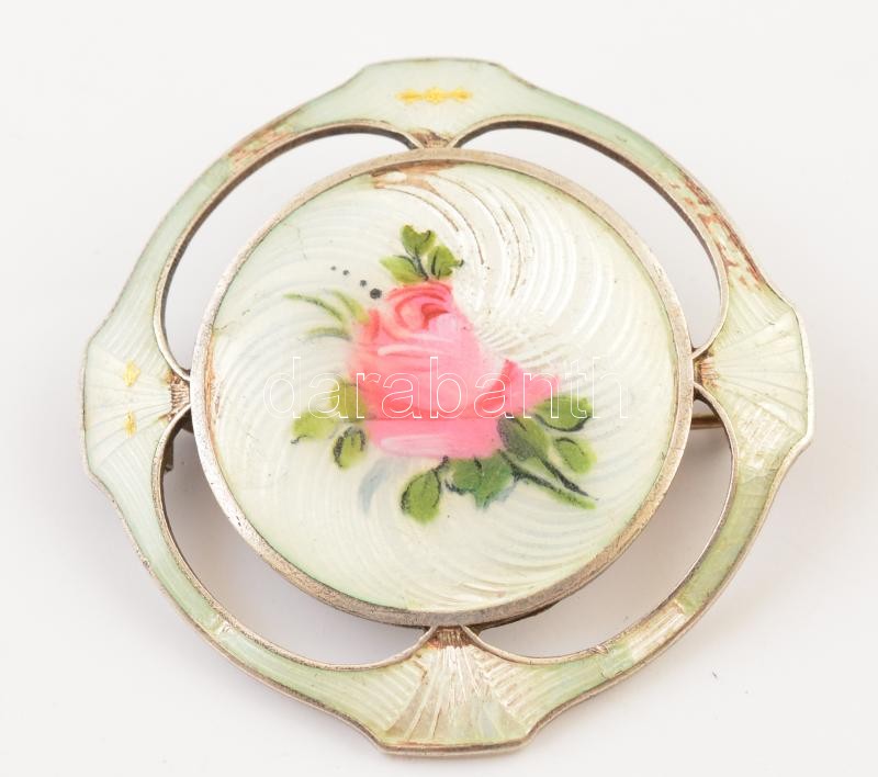 Ezüst(Ag) virágmintás, zománcozott bross, sérült, jelzett, bruttó: 12,2 g