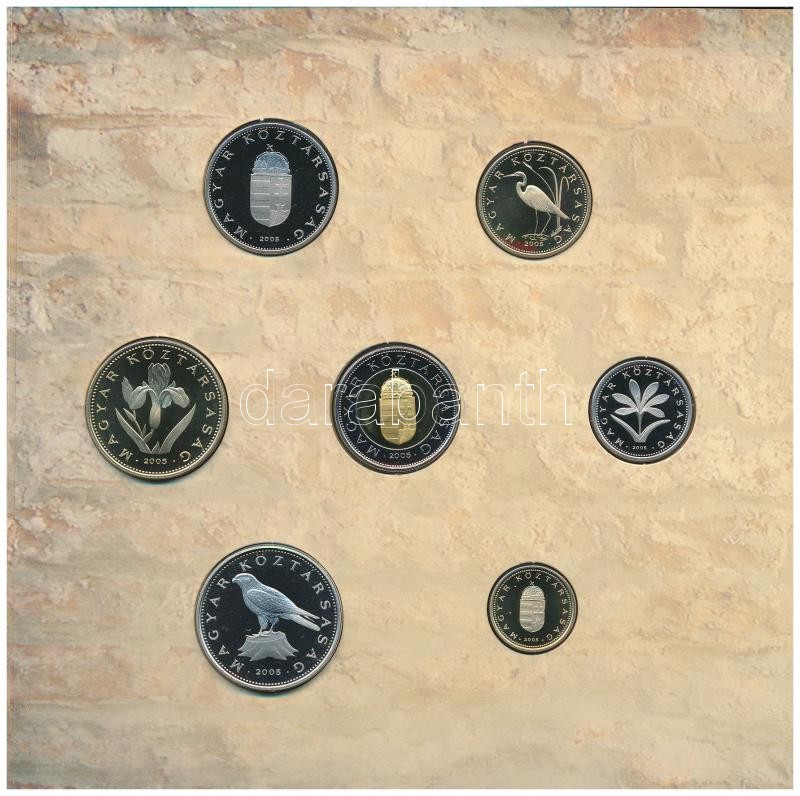 https://www.darabanth.com/en/356-Online-auction/356.0/Numismatics/Hungarian-coins-and-coins-with-Hungarian-mint-marks~2500009/2005-1Ft-100Ft-7xklf-forgalmi-sor-szettben-plus-2005-10Ft-Jozsef-Attila-TPP--Adamo-FO391~II2037019