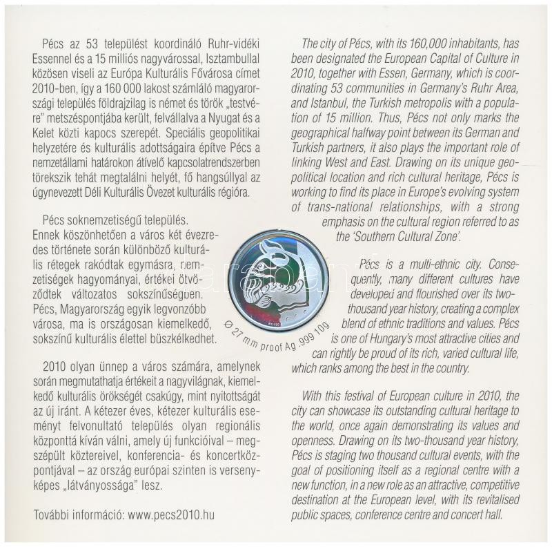 Description: 2010. 5Ft-200Ft (6xklf) forgalmi sor dísztokban, valamint 2010. "Pécs 2010 - Európa Kulturális Fővárosa" Ag emlékérem (10g/0.999/27mm), "Magyarország pénzérméi" sorozat T:PP Adamo FO44.4
