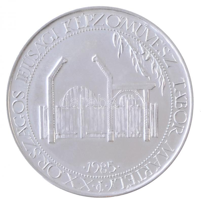 Description: 1985. "Minden madár a maga fészkéről ismertetik meg a leginkább / XX. Országos Ifjúsági Képzőművész Tábor Mártély" peremen jelzett Ag emlékérem (35,56g/0.800/42,5mm) T:1,1-