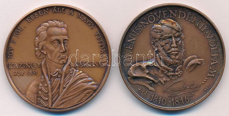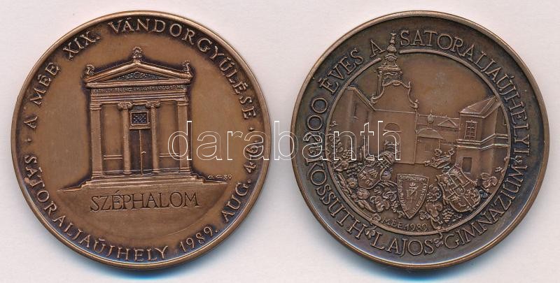 Description: Gáti Gábor (1937-) 1989. "MÉE XIX. Vándorgyűlése Sátoraljaújhely / Jót s jól, ebben áll a nagy titok - Kazinczy Ferenc" Br emlékérem (43mm) + Sebestyén Sándor (1949-2010) 1989. "MÉE - 200 éves a sátoraljaújhelyi Kossuth Lajos Gimnázium" Br emlékérem (43mm) T:1
