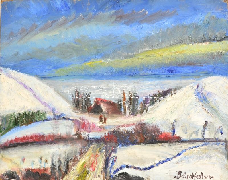 Bárdfalvy jelzéssel: Téli táj. Olaj, farost, 40×50 cm