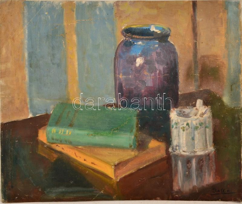Basch jelzéssel: Asztali csendélet. Olaj, vászon-karton, 37×46 cm