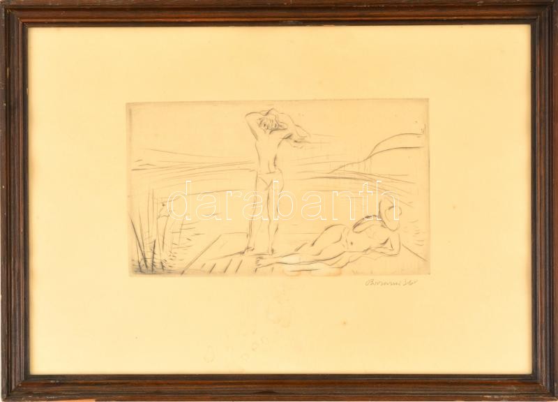 Borsos Miklós (1906-1990): Vetkőző. Rézkarc, papír (kis gyűrődéssel), ...