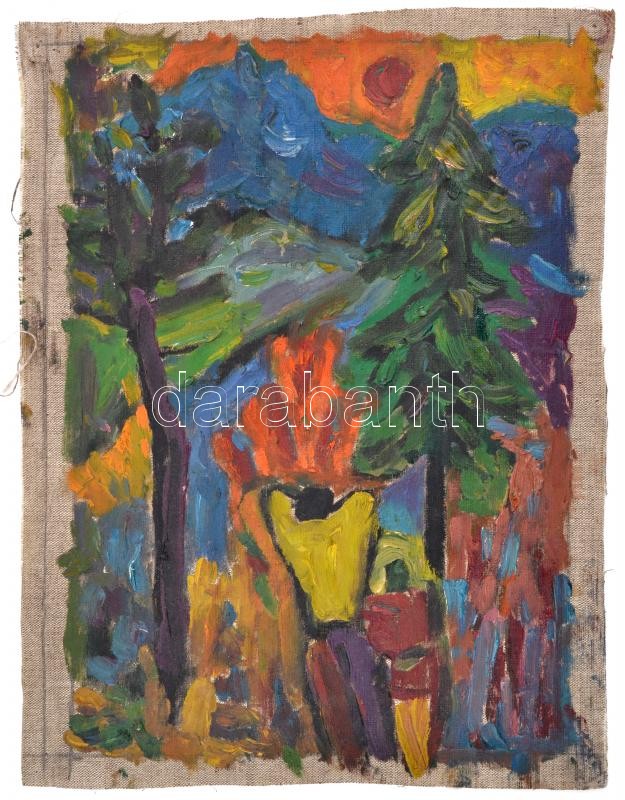 Cs. Németh Miklós (1934-2012): Szabadban. Olaj, vászon, jelzés nélkül, 28×20 cm