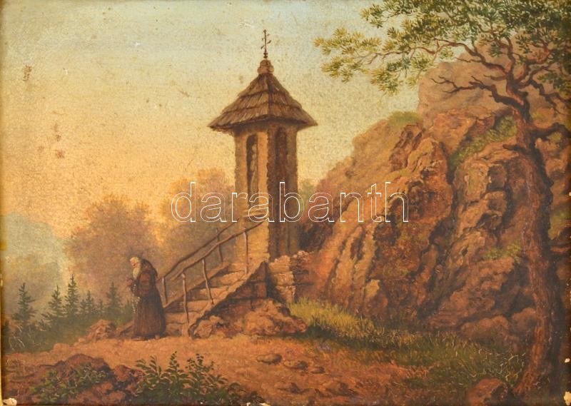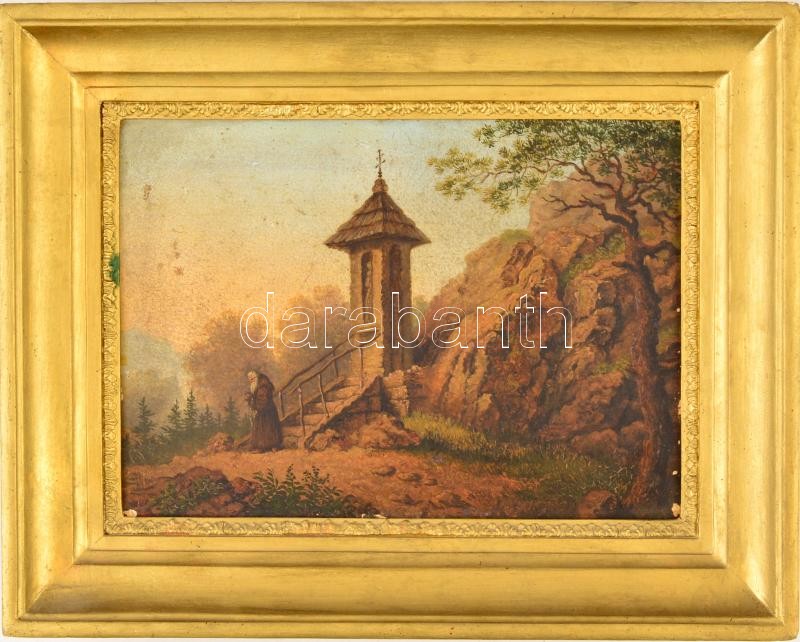 Jelzés nélkül: Imádkozó szerzetes. Olaj, karon, foltos, keretben, 18×2...