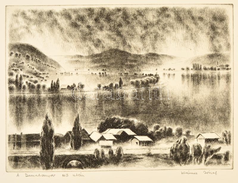 Kórusz József (1927-2010): A Dunakanyar eső után. Rézkarc, papír, jelz...