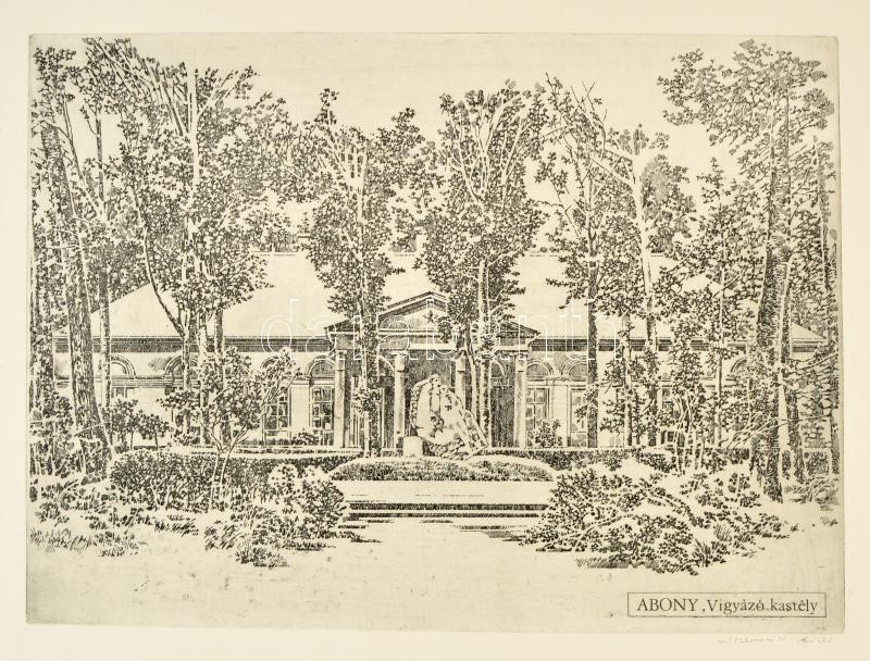 Miskolczi László (1923-1988): Abony Vigyázó kastély. Rézkarc, papír, j...