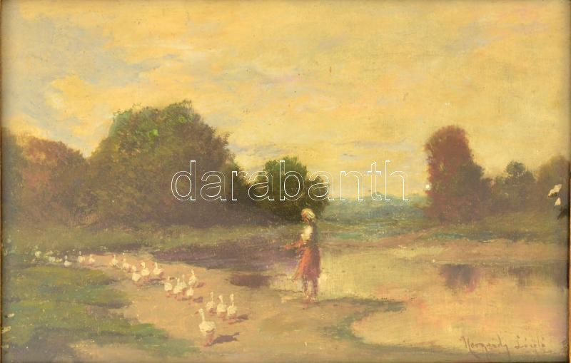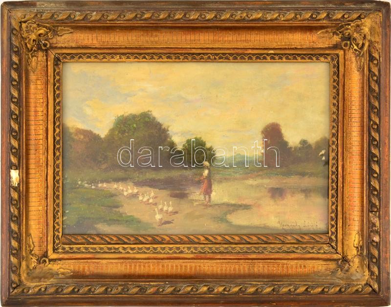 Neogrády László (1896-1962): Libapásztorlány. Olaj, karton, festék hib...