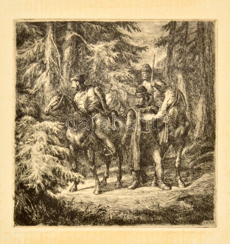 Vidai Brenner Nándor (1903-?): Kurucz járás. Rézkarc, papír, jelzett, ...