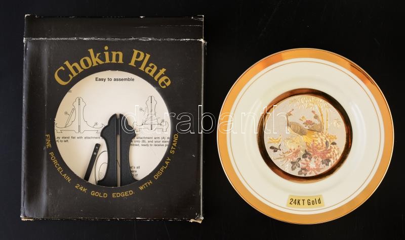 Chokin porcelán dísztányér, jelzett, apró kopásokkal, saját dobozában,...