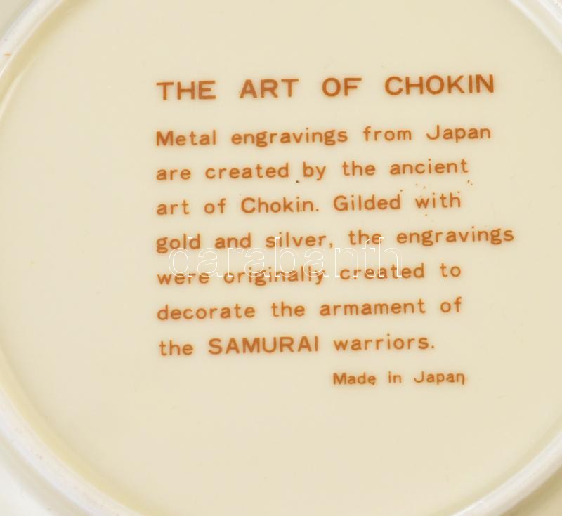 Chokin porcelán dísztányér, jelzett, apró kopásokkal, saját dobozában, d: 16 cm