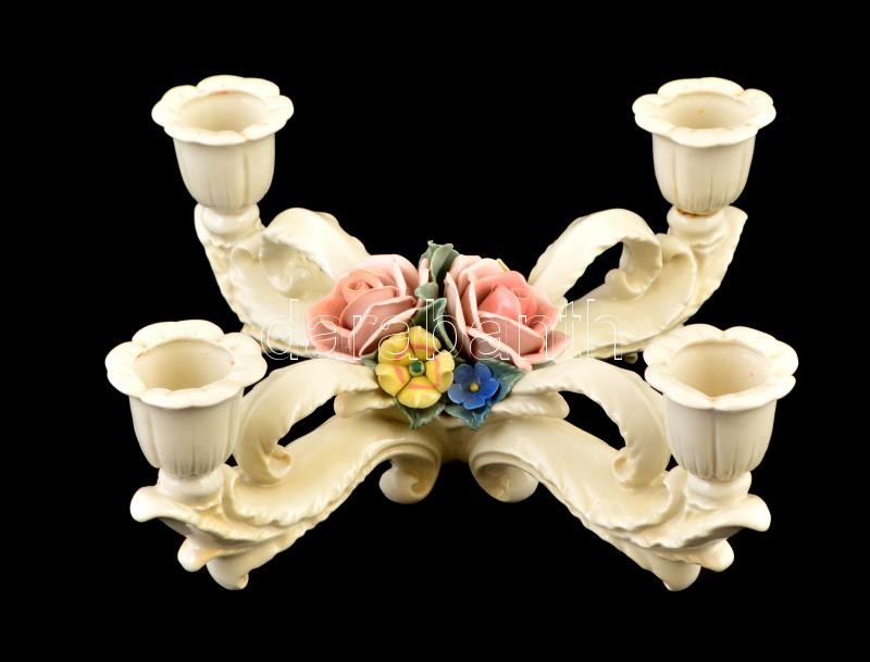 Ens négy ágú gyertyatartó rózsákkal, kézzel festett, jelzett, nagyon a...