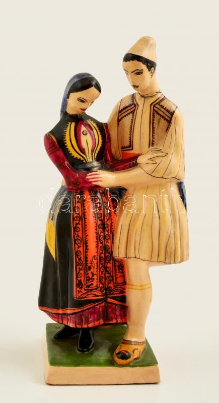 Fiatal pár, szobor, kézzel festett, jelzett, kis kopásokkal, m: 24 cm