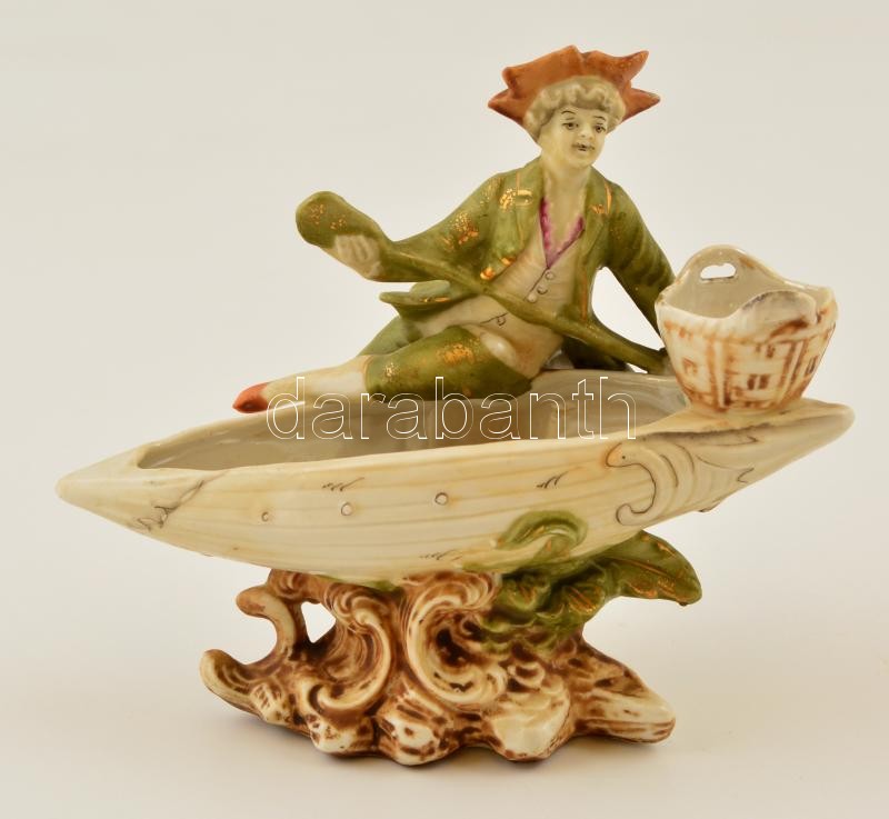 Ifjú a csónakkal, kézzel festett, apró lepattanással, jelzés nélkül, m: 10 cm, h: 13 cm