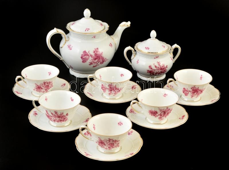 Rosenthal teás készlet 6 személyes. Matricás, jelzett. Egy csésze lepattanással.