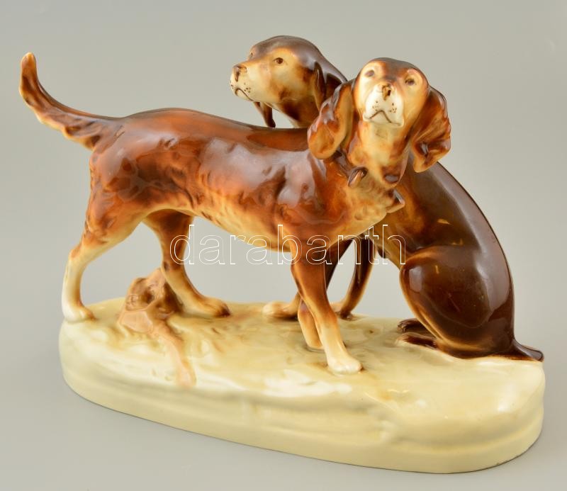 Royal Dux vadászkutyák, kézzel festett, jelzett, apró kopásnyomokkal, ...