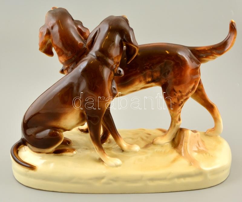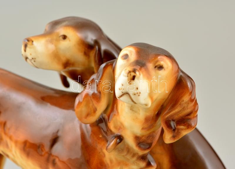 Royal Dux vadászkutyák, kézzel festett, jelzett, apró kopásnyomokkal, m:20,5 cm, h:27 cm