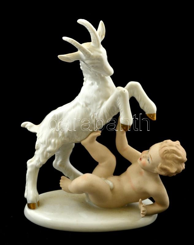 Wallendorf játszó puttó kecskével, kézzel festett, jelzett, hibátlan, ...