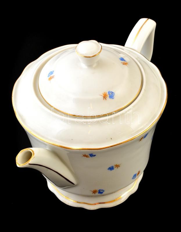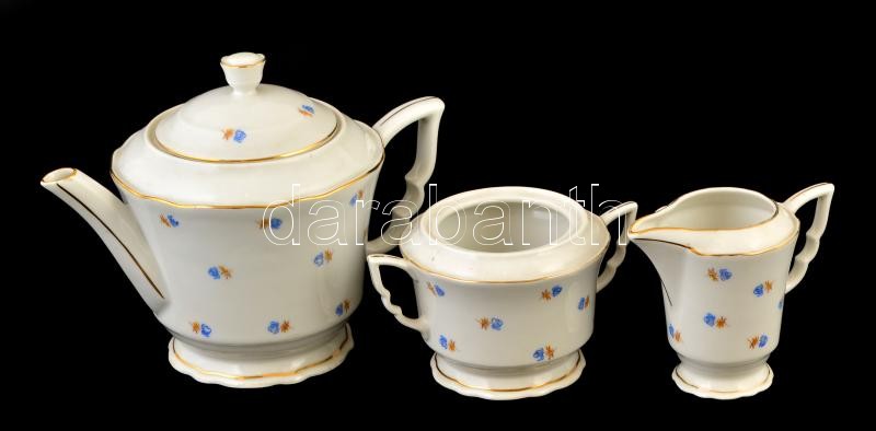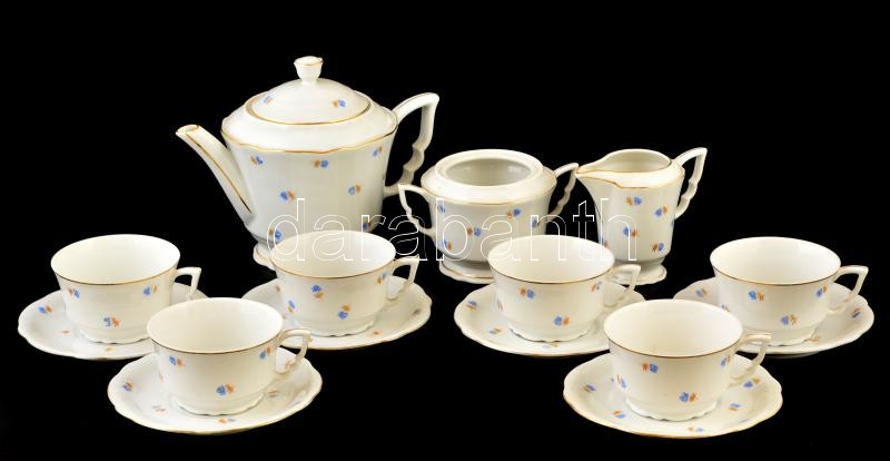 Zsolnay apró virágos teás készlet, matricás, jelzett, kopásnyomokkal