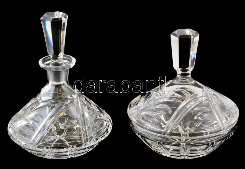 Csiszolt ólomkristály bonbonrei és kiöntő dugóval, jelzés nélkül, apró csorbákkal, m:15 és 16,5 cm