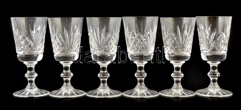 Csiszolt ólomkristály talpas kis pohár, (6 db), hibátlan, jelzés nélkül, m:11,5 cm (6 ×)